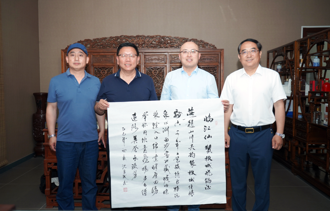訪問(wèn)期間,沈重武副會(huì)長(zhǎng)現(xiàn)場(chǎng)揮毫潑墨,向板城酒業(yè)贈(zèng)送書(shū)畫(huà)作品《臨江仙·贊板城燒鍋酒》,表達(dá)了其對(duì)板城酒業(yè)三百多年不間斷傳承的國(guó)家級(jí)非物質(zhì)文化遺產(chǎn)老五甑釀造技藝與“一店燒鍋兩朝御賜,乾隆妙對(duì)嘉慶天章”深厚歷史的稱(chēng)贊。